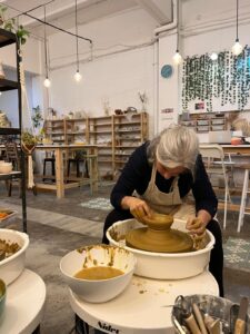Es fundamental tener claro si lo que voy a crear será un plato, un vaso o un jarrón. Esa decisión inicial define la dirección de mis manos y la fuerza de mi expresión. A medida que avanzo, es sorprendente sentir cómo, al moldear esa pieza de barro, también voy uniendo partes de mí misma. Trozos dispersos que, al entrelazarse, me permiten desdibujar poco a poco la forma de comunicarme con el mundo.
